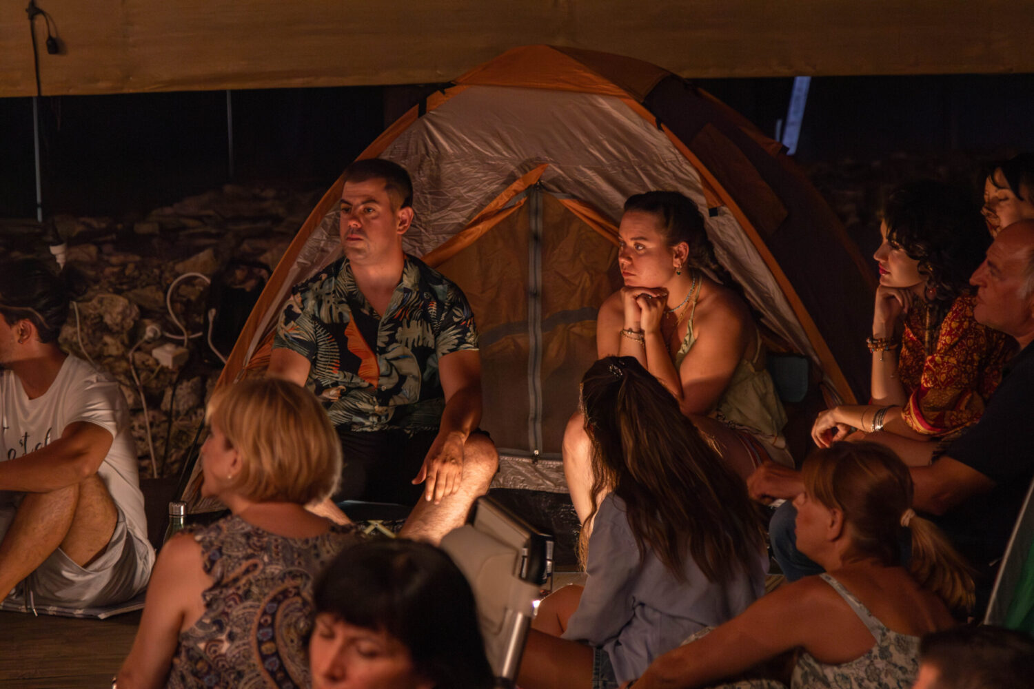 The creative company APARÄMILLON, consistently working on research-based original dramaturgies, now shifts its attention to the dramaturgy of Iakovos Kampanellis for the first time. In particular, it explores the legendary play The Courtyard of Miracles, offering a participatory performance that focuses on the conflict of interests surrounding overtourism in the Greek islands.